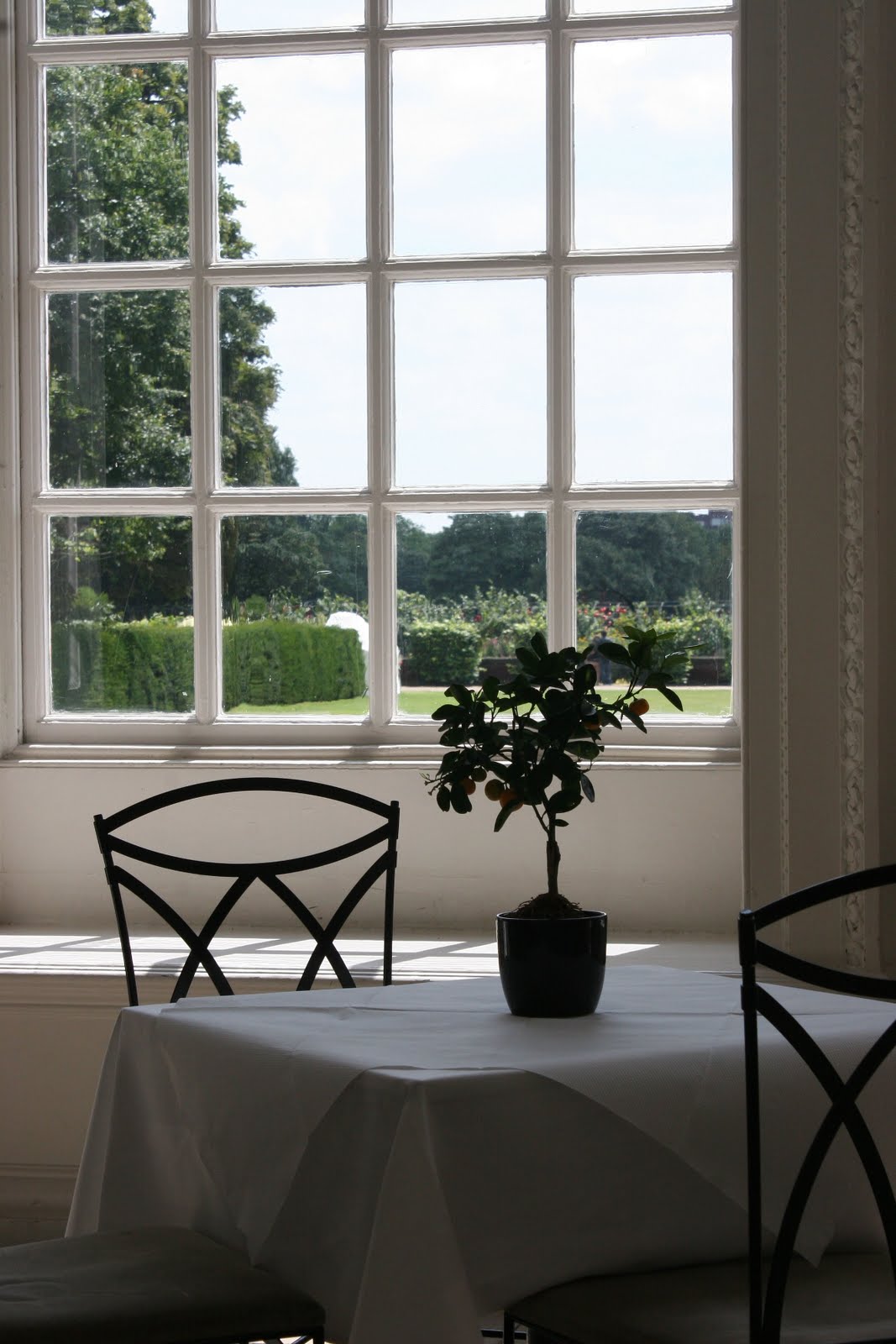 After a lovely stroll in the gardens, we took tea at the Orangery. It was built in 1704-5 by Queen Anne as a greenhouse for citrus trees (mainly oranges, hence the name). I had chocolate tea. Yes, you read that right. CHOCOLATE TEA.