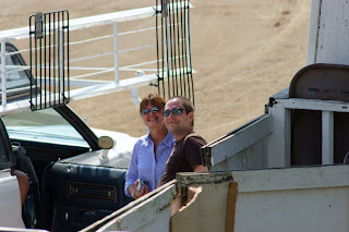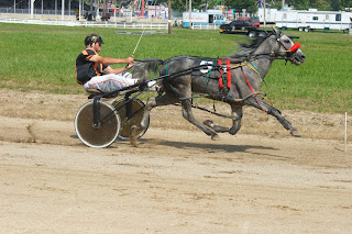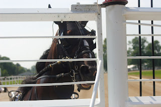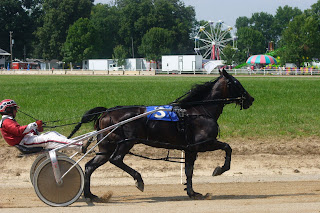 We stopped by the fair to see who had won ribbons. And catch some more harness racing. Grandad set it up with Stan Hosapple so we could ride in the start car.
