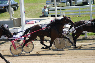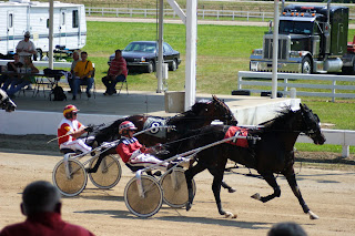 At the fair, it was an afternoon of harness racing. And hanging out with Grandad, who works in the grandstand.