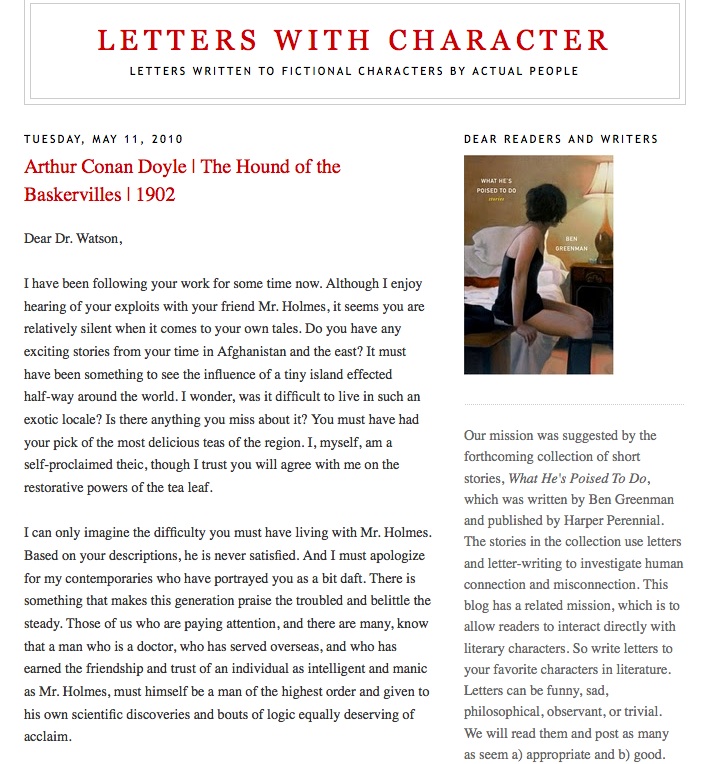 Write your own letter to a fictional character and send it to LettersWithCharacter@gmail.com