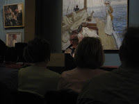 Following her presentation, I went to see Roy Blount, Jr. present his findings on Duck Soup and the Marx Brothers. (Again, Chuck Leavell was scheduled opposite this lecture, which was frustrating.) Blount has written a book called Hail, Hail, Euphoria!, a rather unlikely cinema studies handbook. His talk consisted of watching very funny clips from this classic 1936 film, and his commentary on the brothers. Much of their background can be found in the undertones of this movie. Sibling rivalry, xenophobia, and prejudice abound.