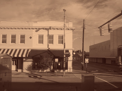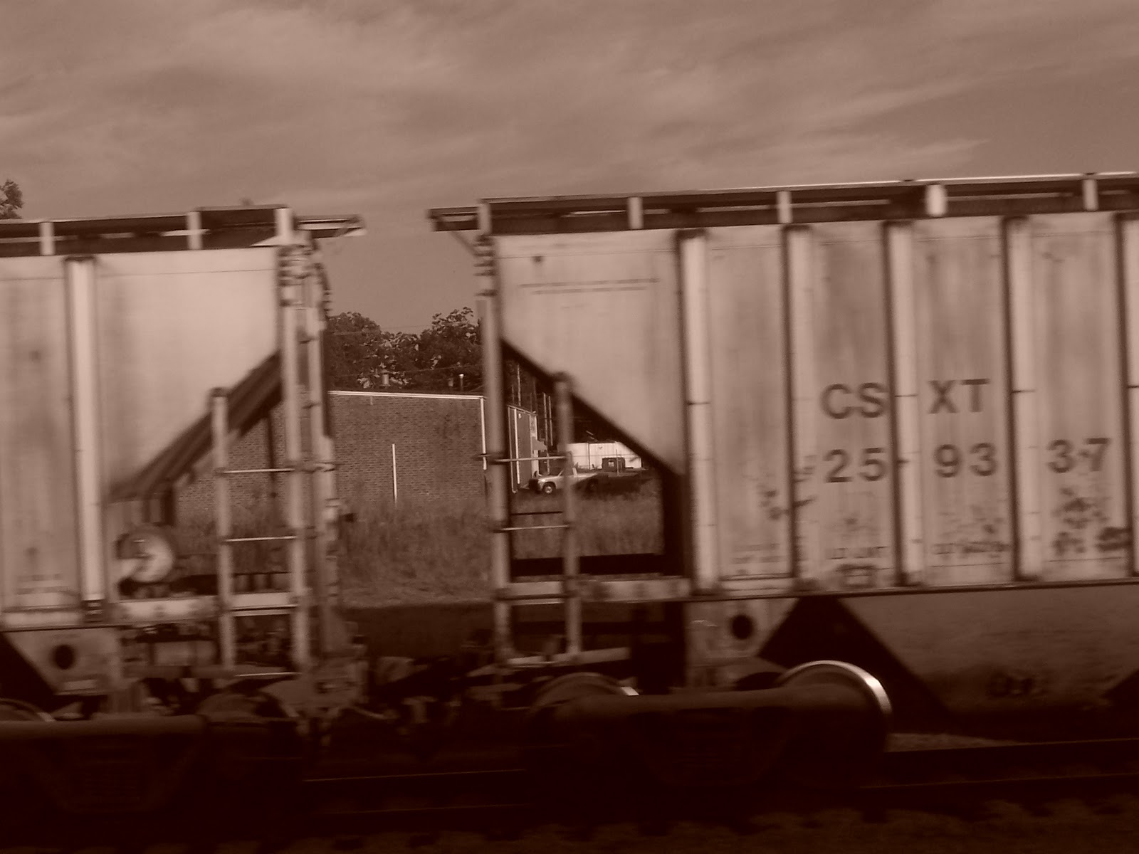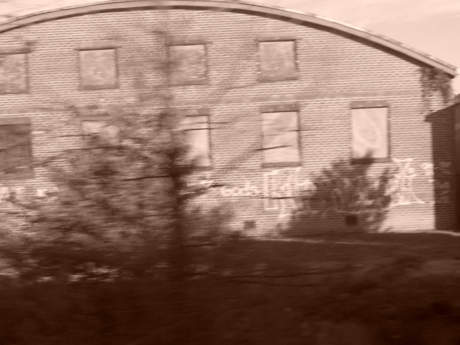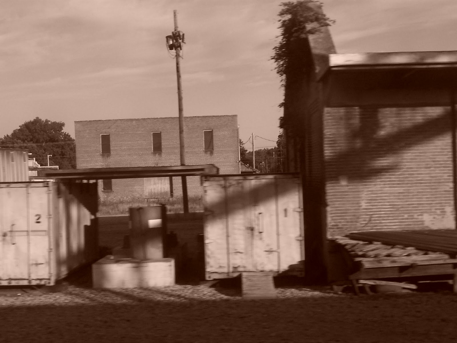 I was interesting to see a town center or a crossing from other side. It was like looking in a 2-way mirror. These were the buildings and storefronts that serve (or served) a purpose when train travel (and shipping) was king. Now, many of these are warehouses, or empty. Rusting, dilapidated and nearly forgotten. All captured from the window of a moving train.